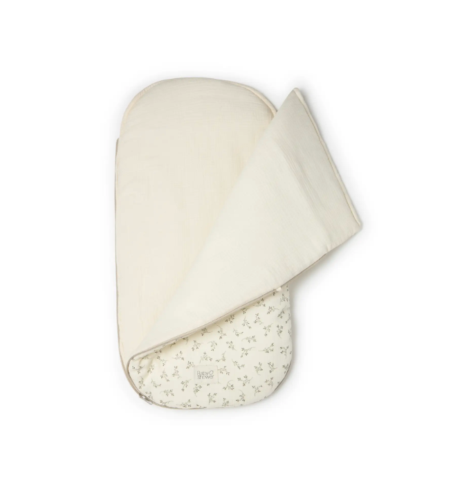 Sleeping bag designed for use inside the stroller carrycot, crib, or basket. It’s reversible for use on both sides. The padding is ideal for transitional months but can be fully opened to keep the baby uncovered during warmer months.