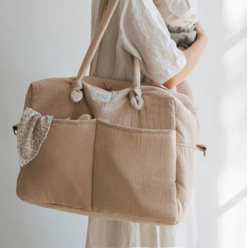 Introducing our Sophie Maternity Bag, perfect for modern moms. Made with 100% organic cotton in Spain, it's both stylish and functional for all your baby's needs. Easy to clean and comes with matching everyday pieces. Shop all our pieces online or in store.
